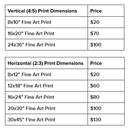 Sizes & Pricing